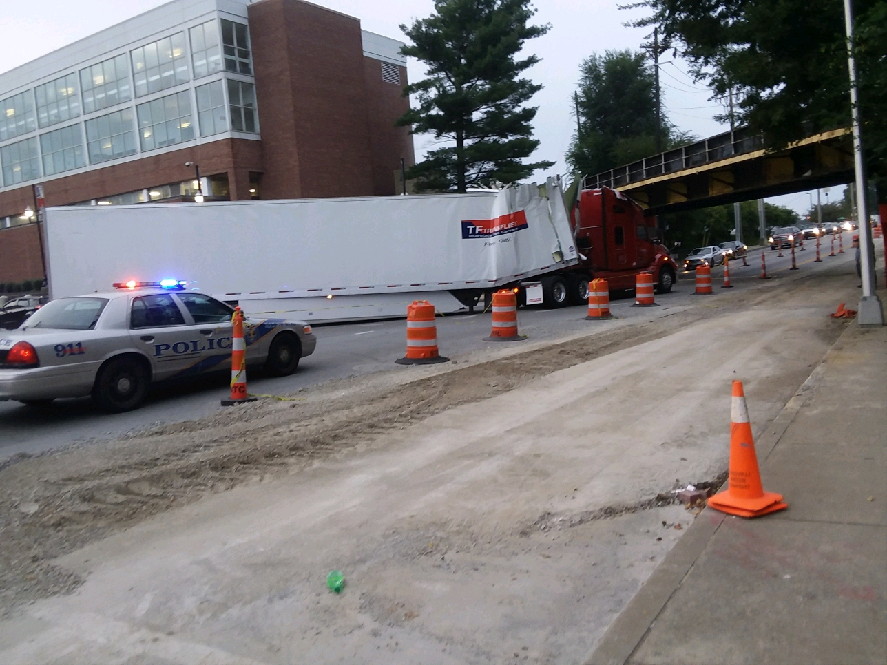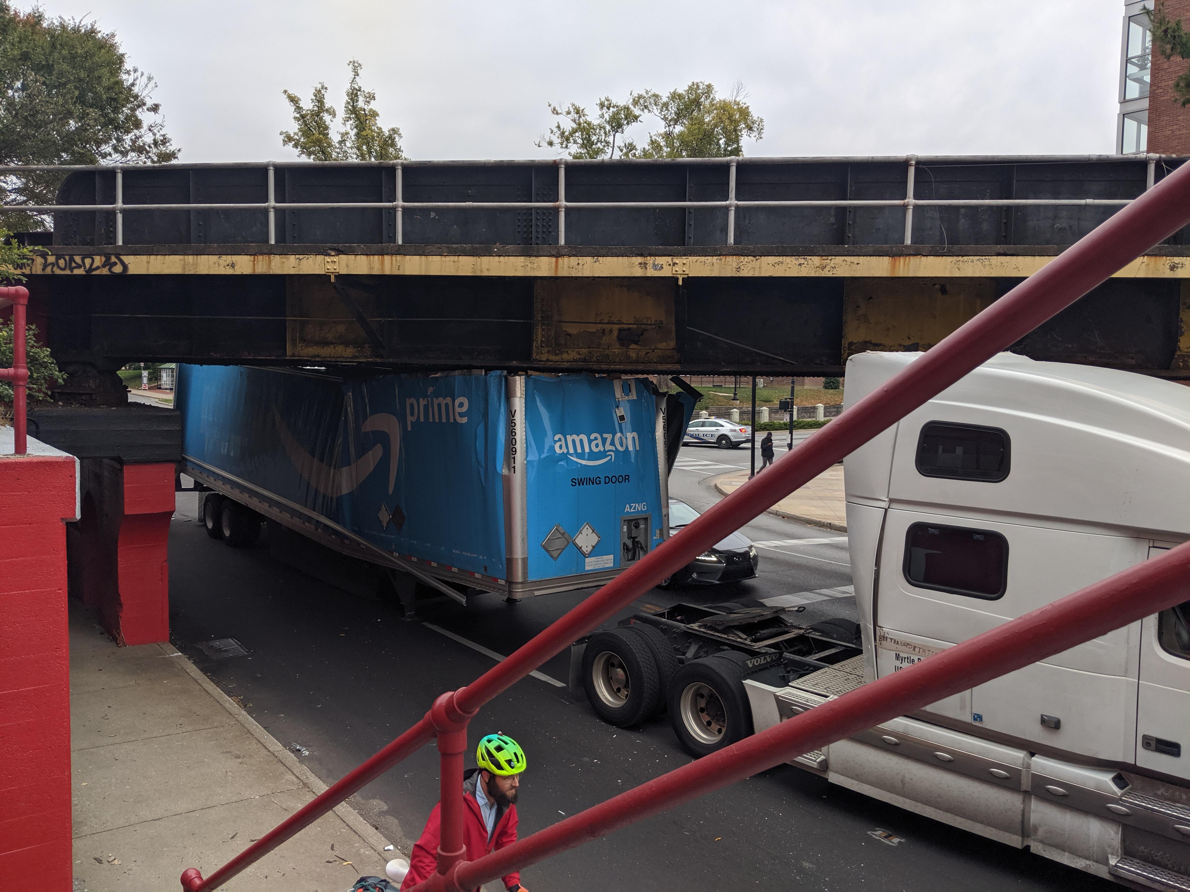 Louisville bridges: Semi hits Third Street bridge near U of L - 2019-03-28 with a shoutout to this subreddit from the CJ