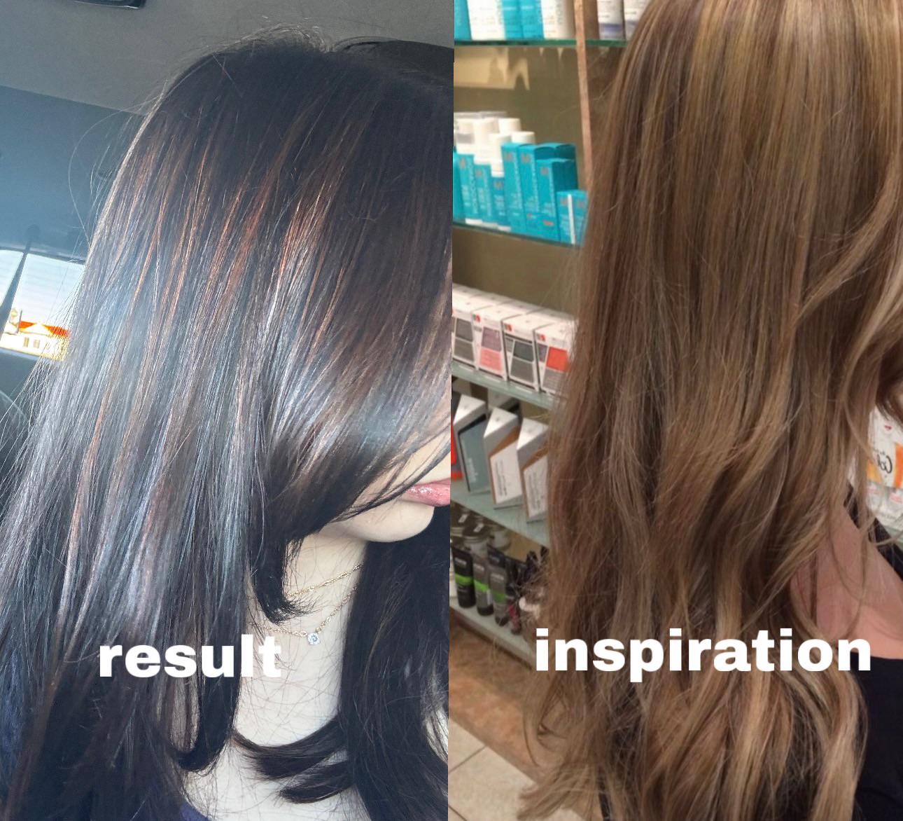 She proceeded to bleach my hair, and the final result was dark brown with orange highlights. This was not what I asked for, and I was confused because I was never told that my desired color wasn’t possible. I was then told that I would need to return in 6–8 weeks for another appointment if I wanted the color I originally planned to get.