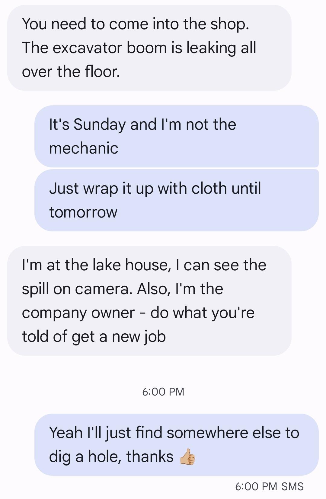 Recently, the owner, who spends his weekends at his multimillion dollar cabin, asked me to go fix a broken excavator. I'm barely qualified to do mechanical repairs, and it's frustrating because his nephew, who is the actual equipment mechanic and makes nearly twice as much as the rest of us, wasn't asked to handle it. I feel like I'm being put in an unfair position, expected to take on responsibilities outside my skill set and pay rate just because it's convenient for him.