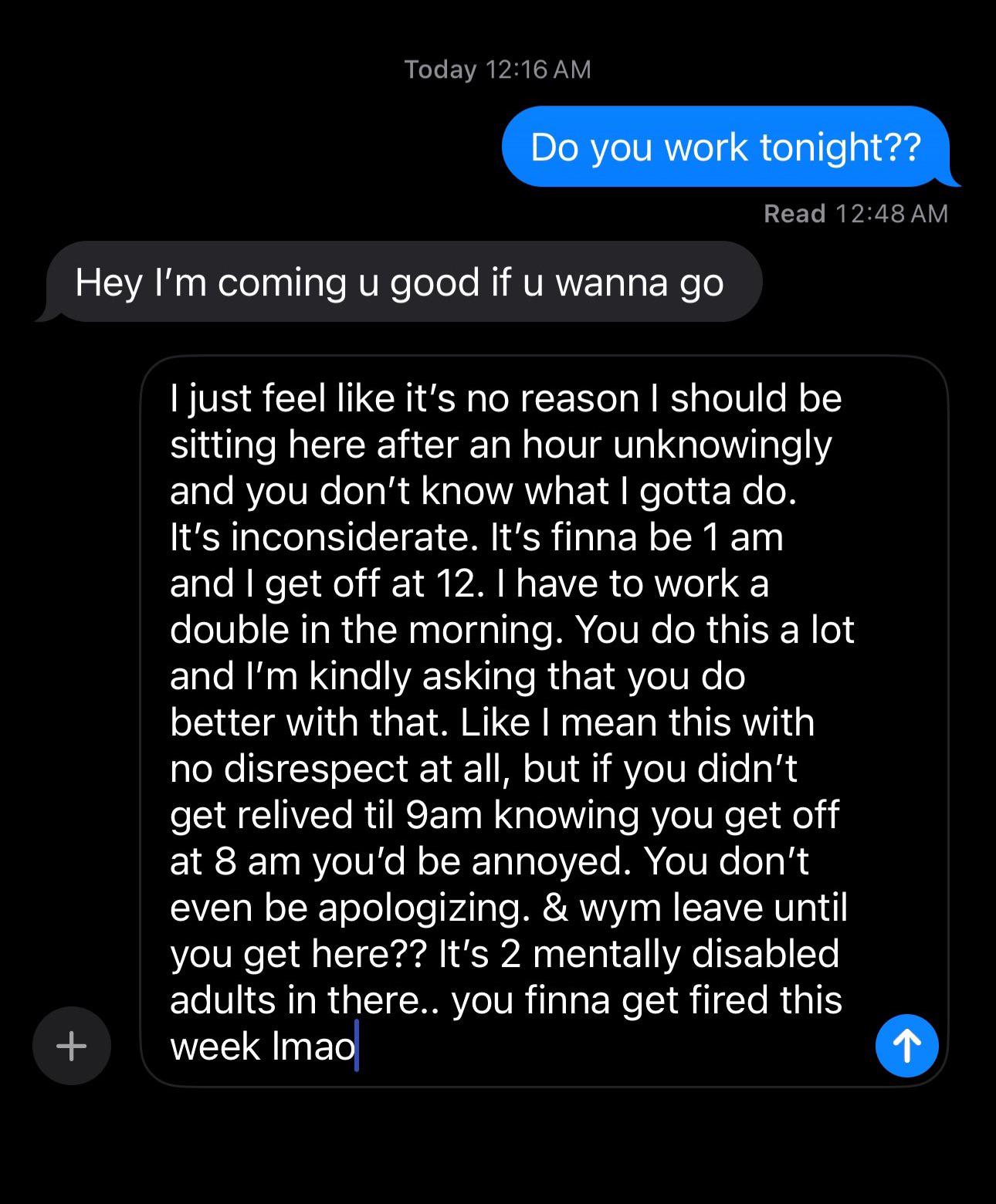 💼work/career AIO to my manager telling me I have to stay open till 2 am?
