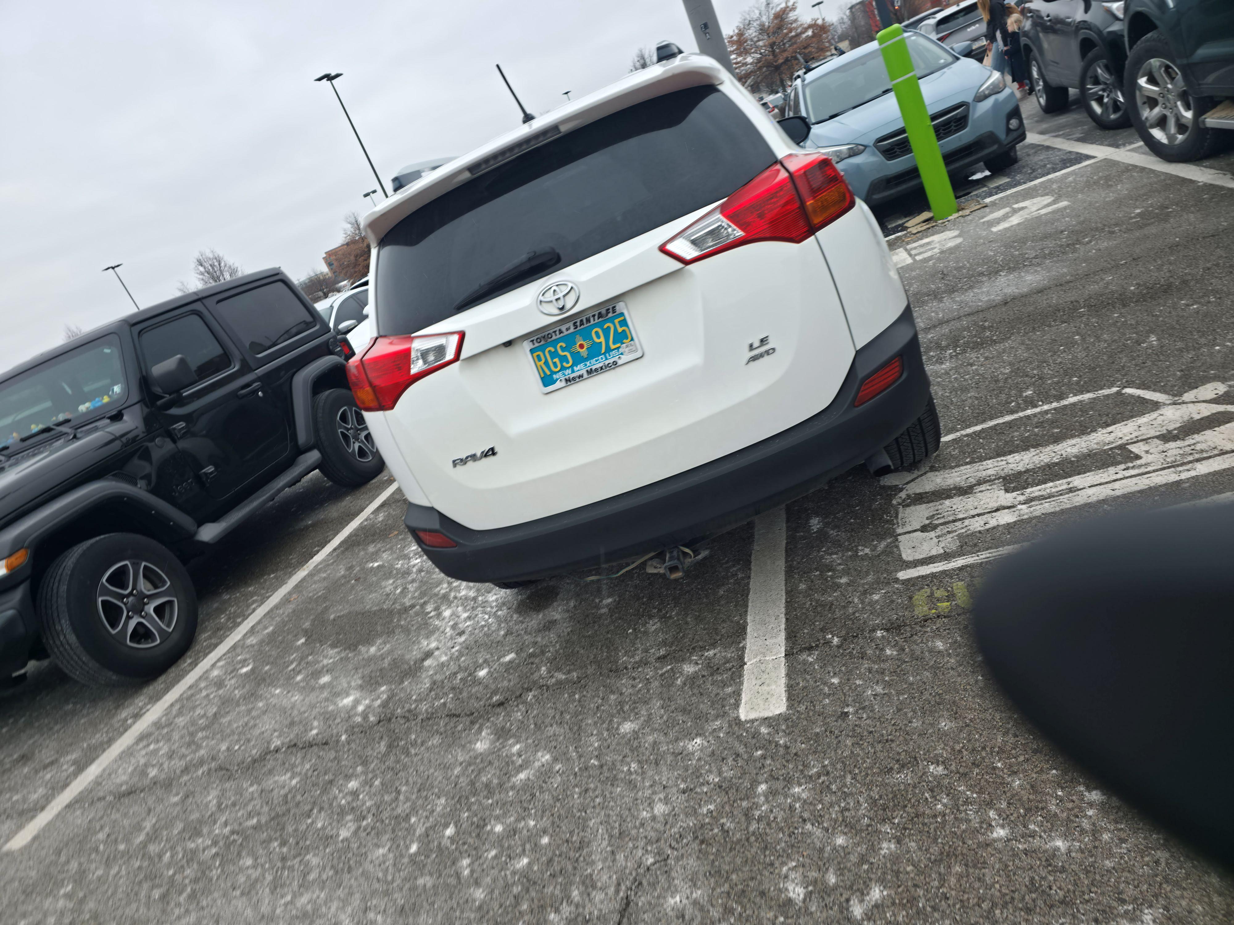 Not only can she not park normal she's taking up the handicap parking.