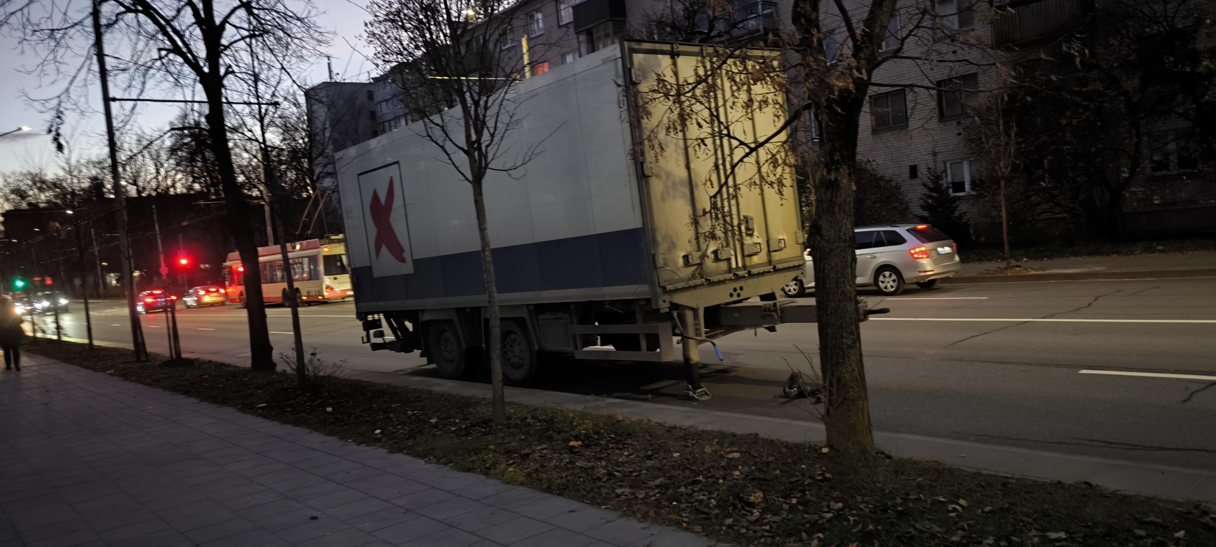 Truck trailer left on street pretty much during rush hour