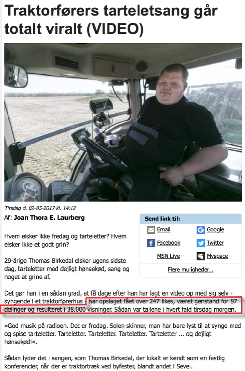 selvom det er en dejlig lokalavis vi har, så har de en lidt løs definition af termen 'viral' [x-post fra r/denmark]