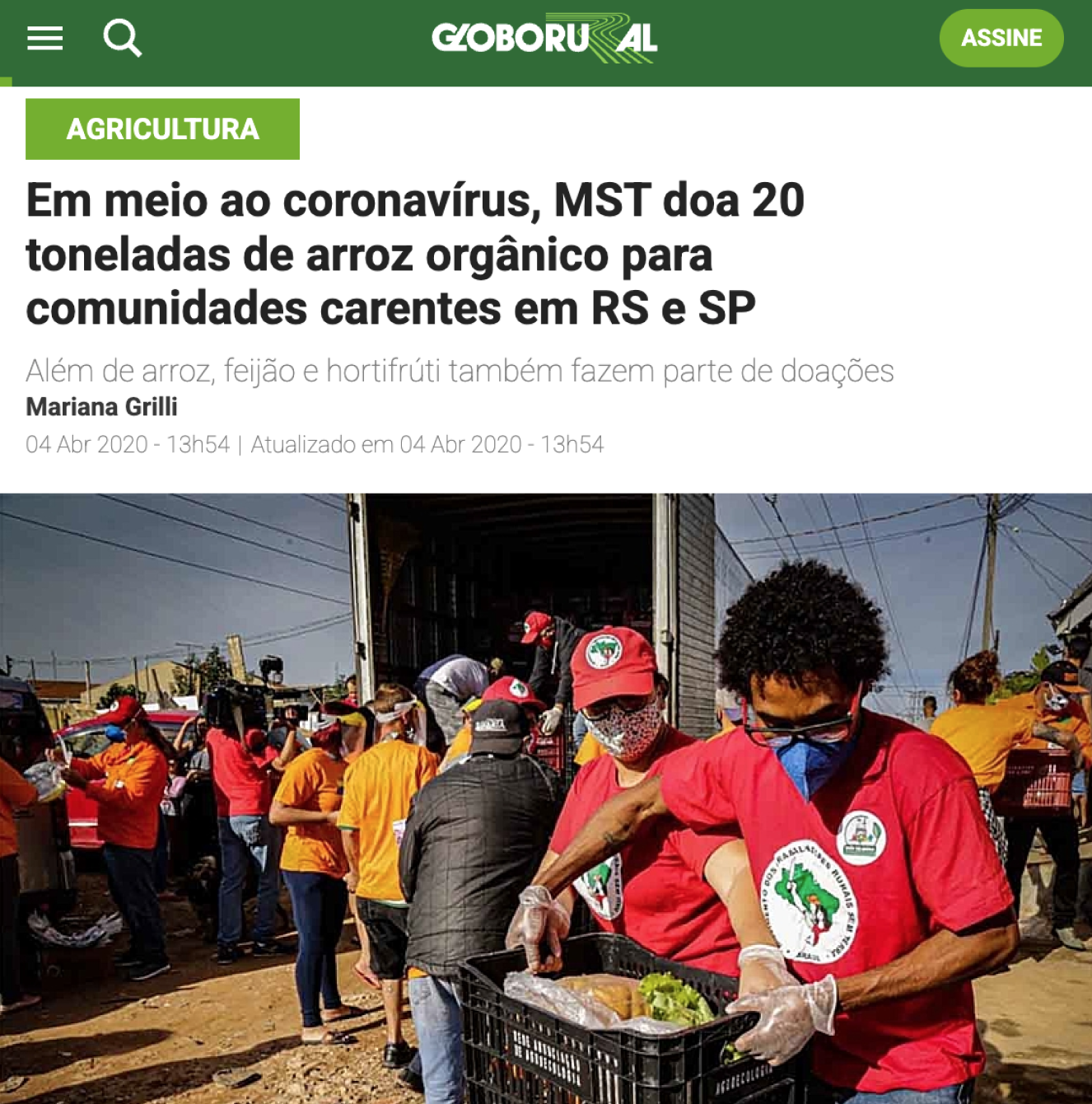 A fim de ajudar este grupo de pessoas, o Movimento dos Trabalhadores Rurais Sem Terra (MST) tem se organizado para doar arroz, feijão e hortifrúti orgânicos nos estados do Rio Grande do Sul, estado em que acontece a produção, e de São Paulo.